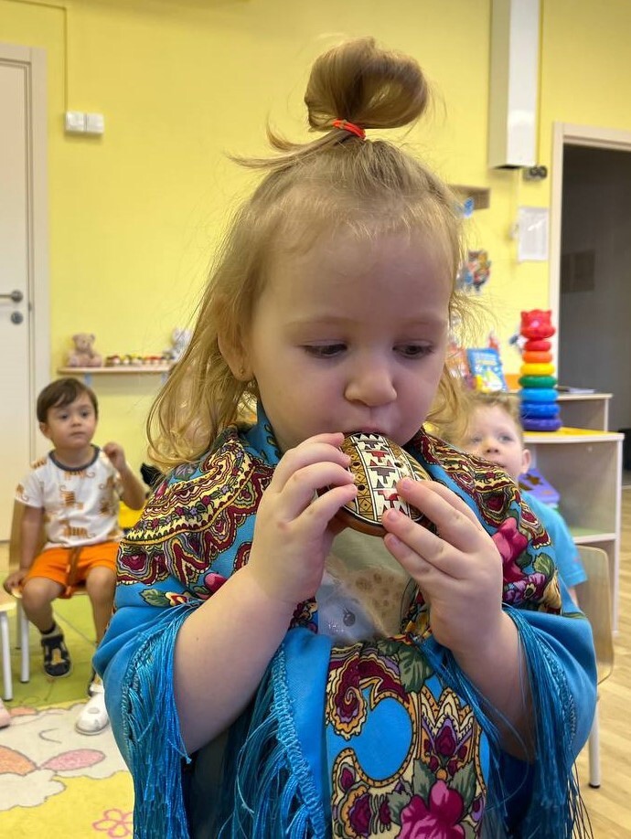 Дети с восторгом рассматривали матрёшек, удивляясь, как это так, что одна куколка прячется в другой. Деревянные лошадки "скакали" по столам, тряпичные куколки, как и сто, двести лет назад, "говорили" "ма-ма", а свистульки и стукалочки наполняли группу весёлыми звуками. Ну как в этот день не вспомнить и о музыкальных трещотках, бубенцах и ложках?!
